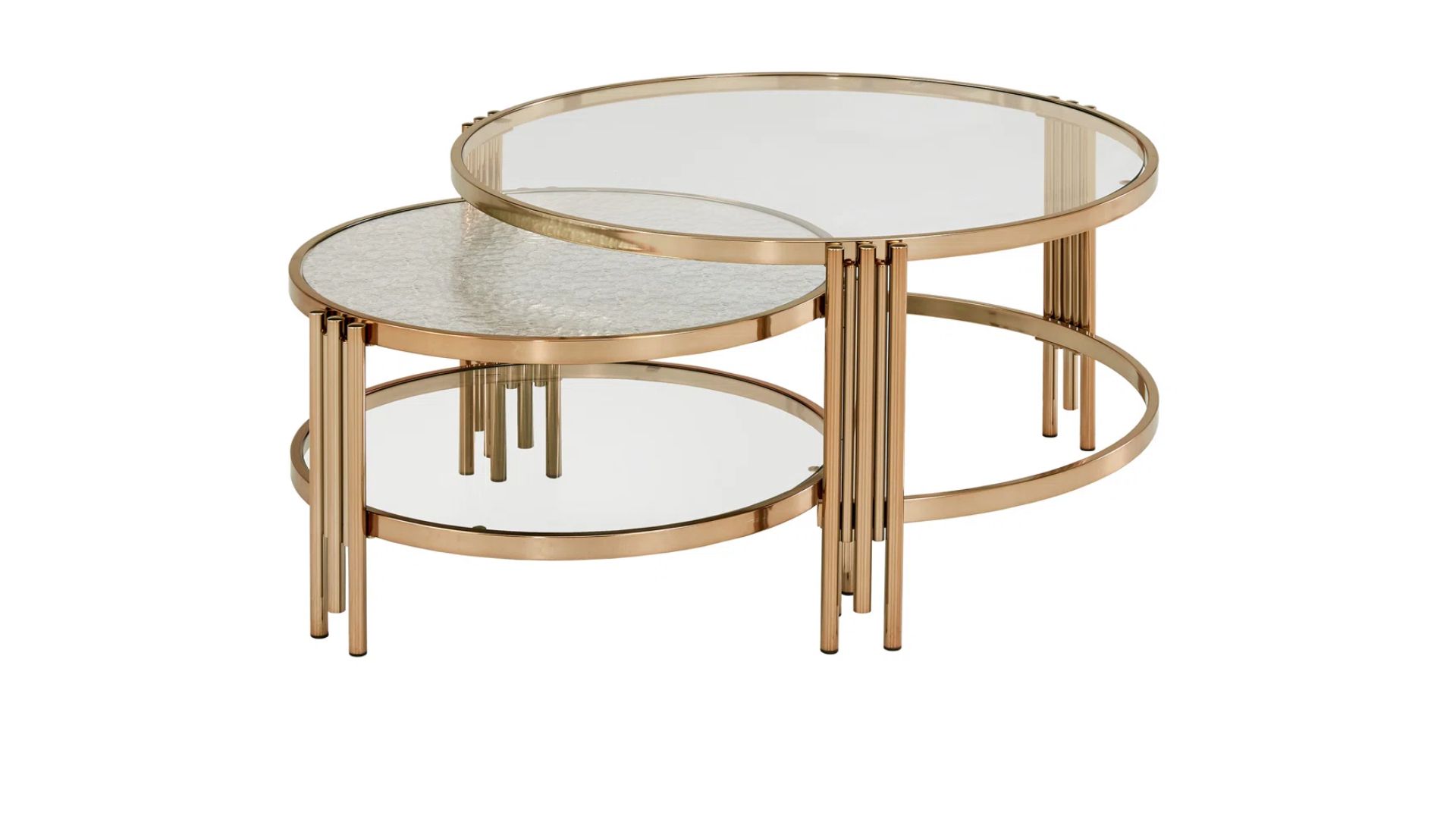 2 - Piece Champagne Gold Finish with Textured Glass Coffee Table