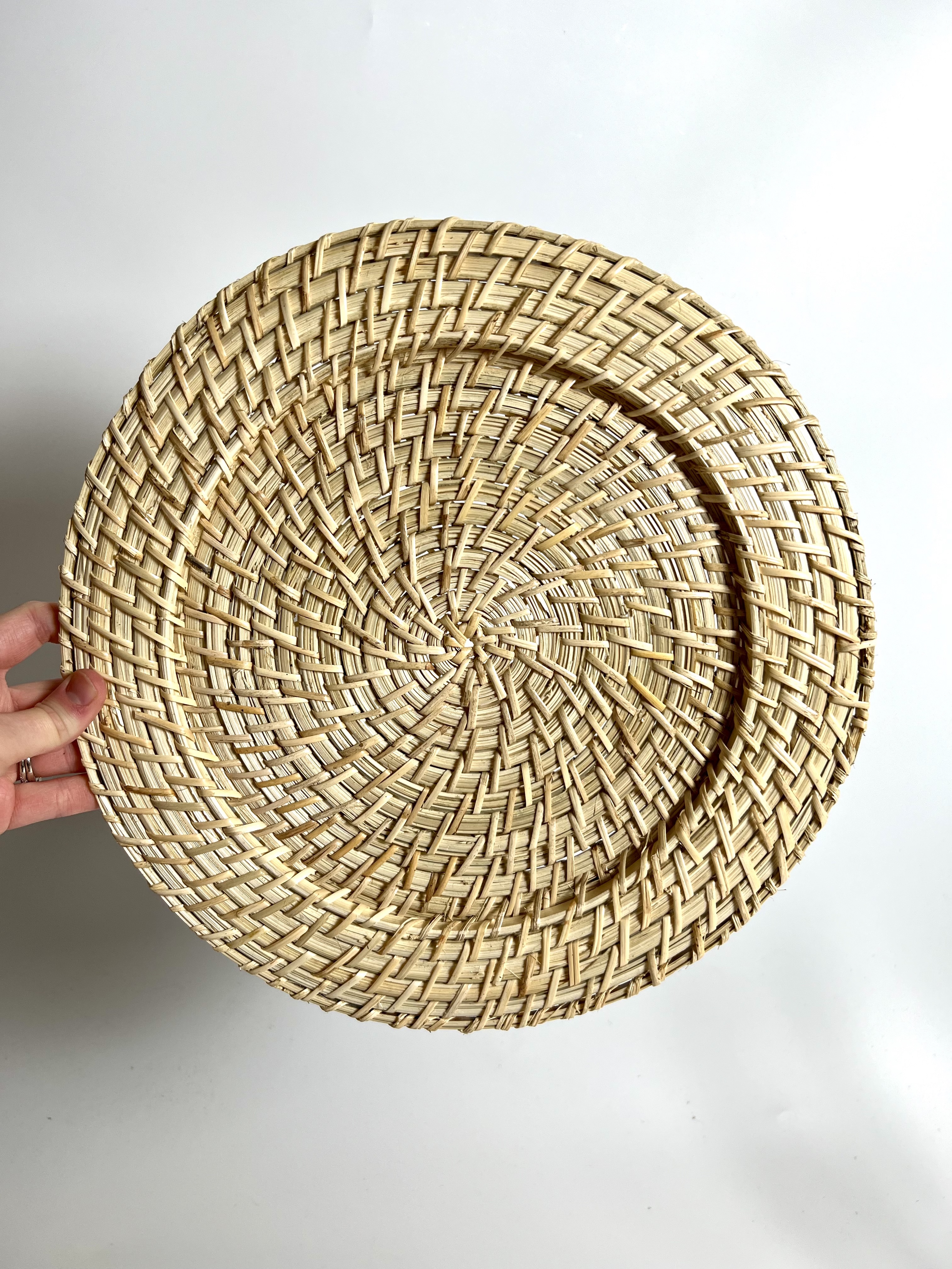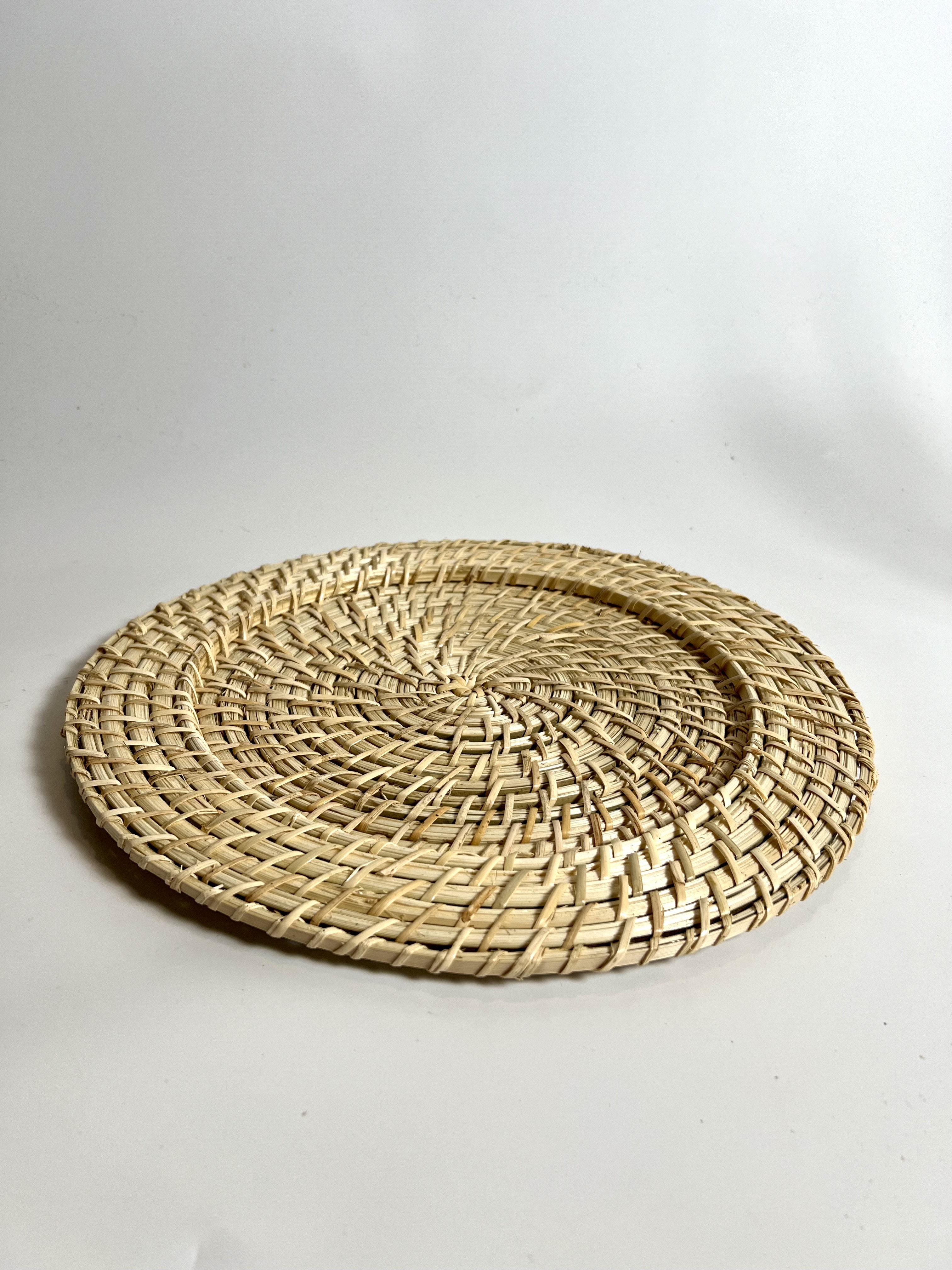 Inventory Gallery Chargers Blond Rattan Charger Search View Wishlist Blond Rattan Charger Price: $1.50 Description: This 13 inch round blond rattan charger is perfect to add that "look" you're searching for your event. Tags: boho, chargers, rattan Add to Wishlist