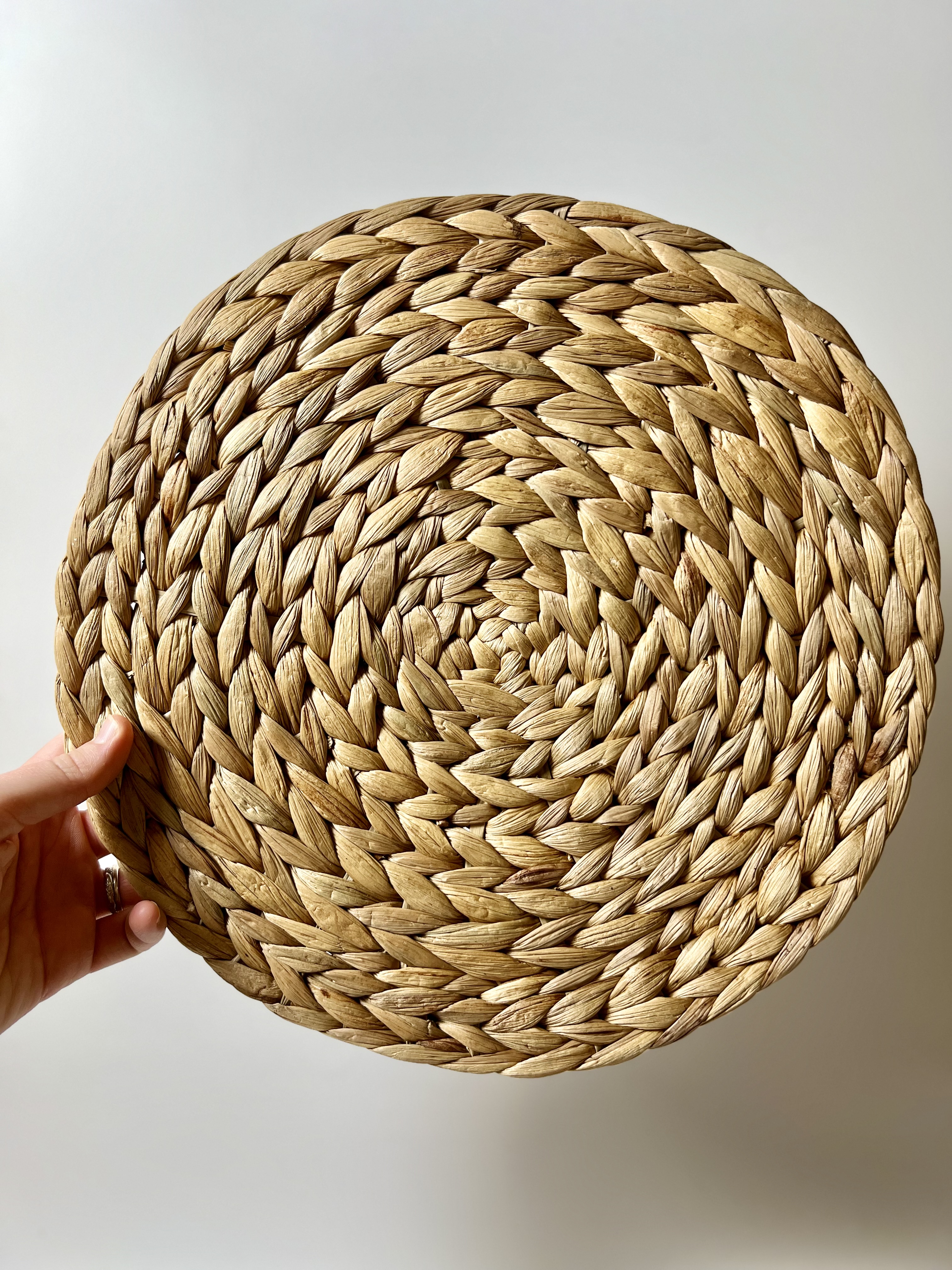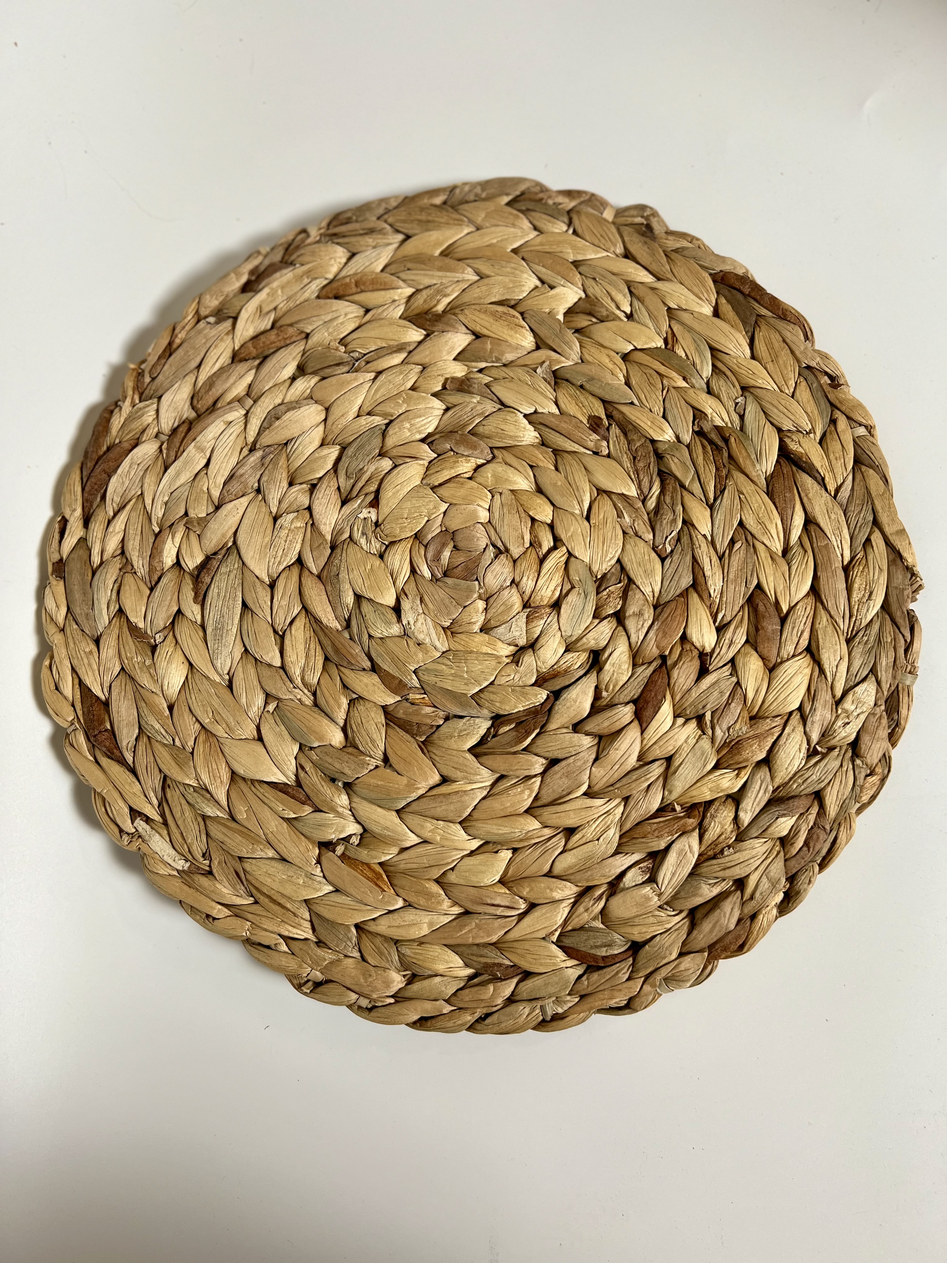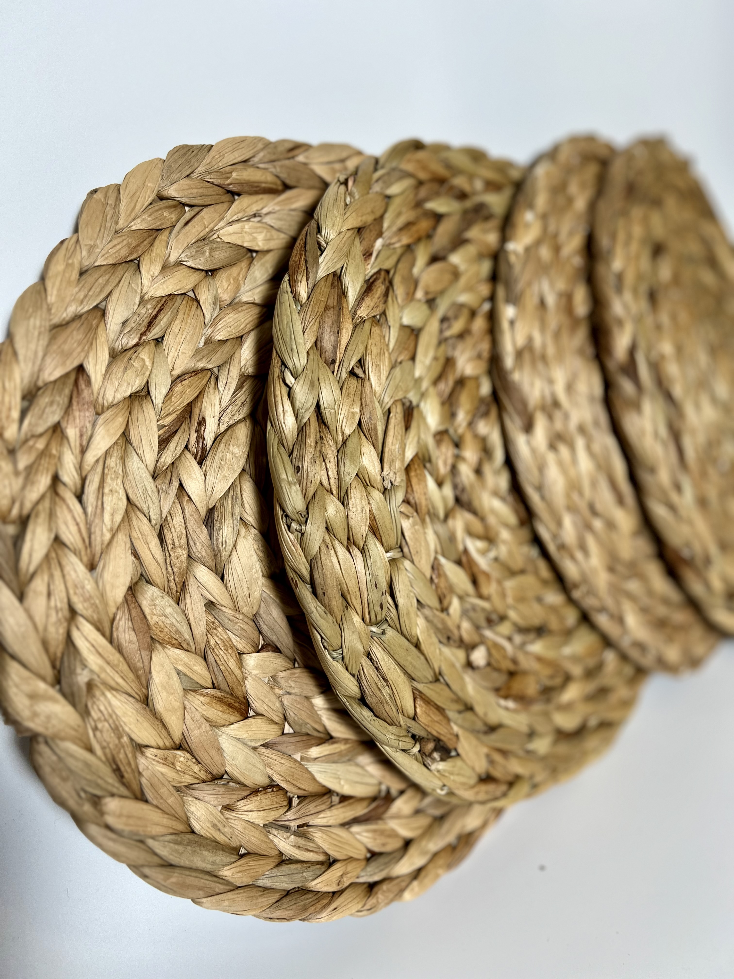 These handmade chargers are made of 100% water hyacinth. It's 13 inches in diameter, and perfect to pull together you boho, natural wedding or event.