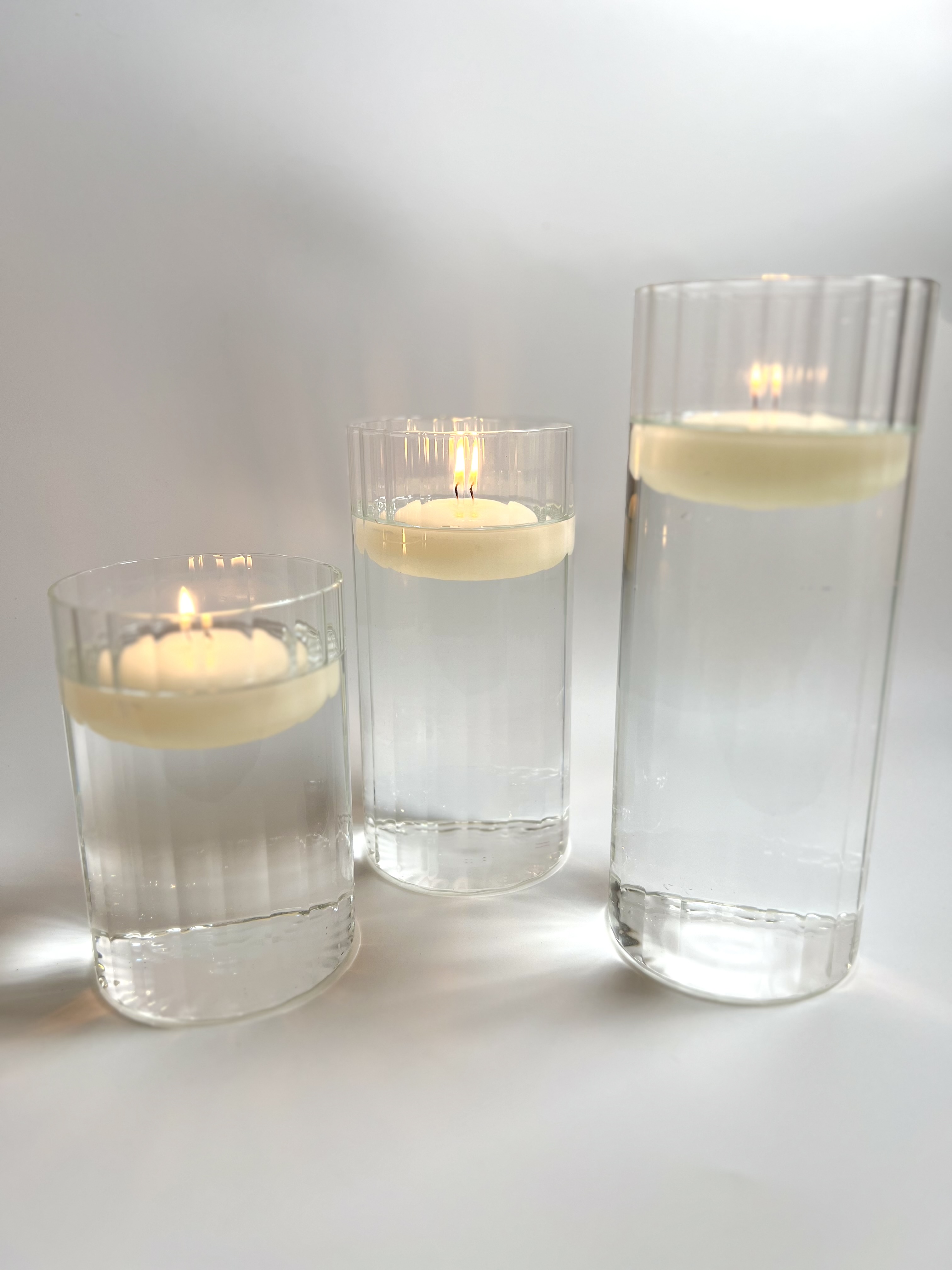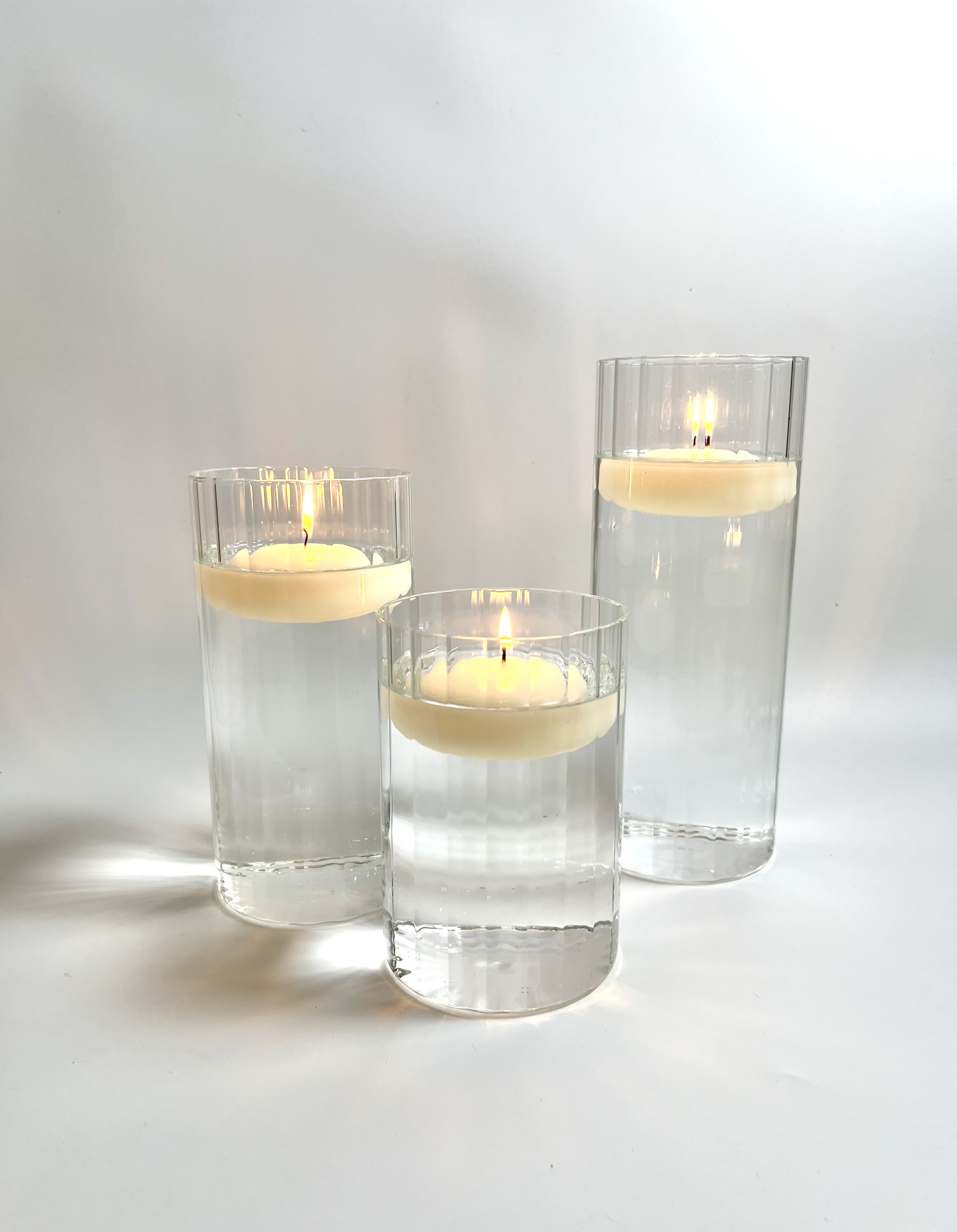 Clear Ribbed Glass Cylinder Vase Set