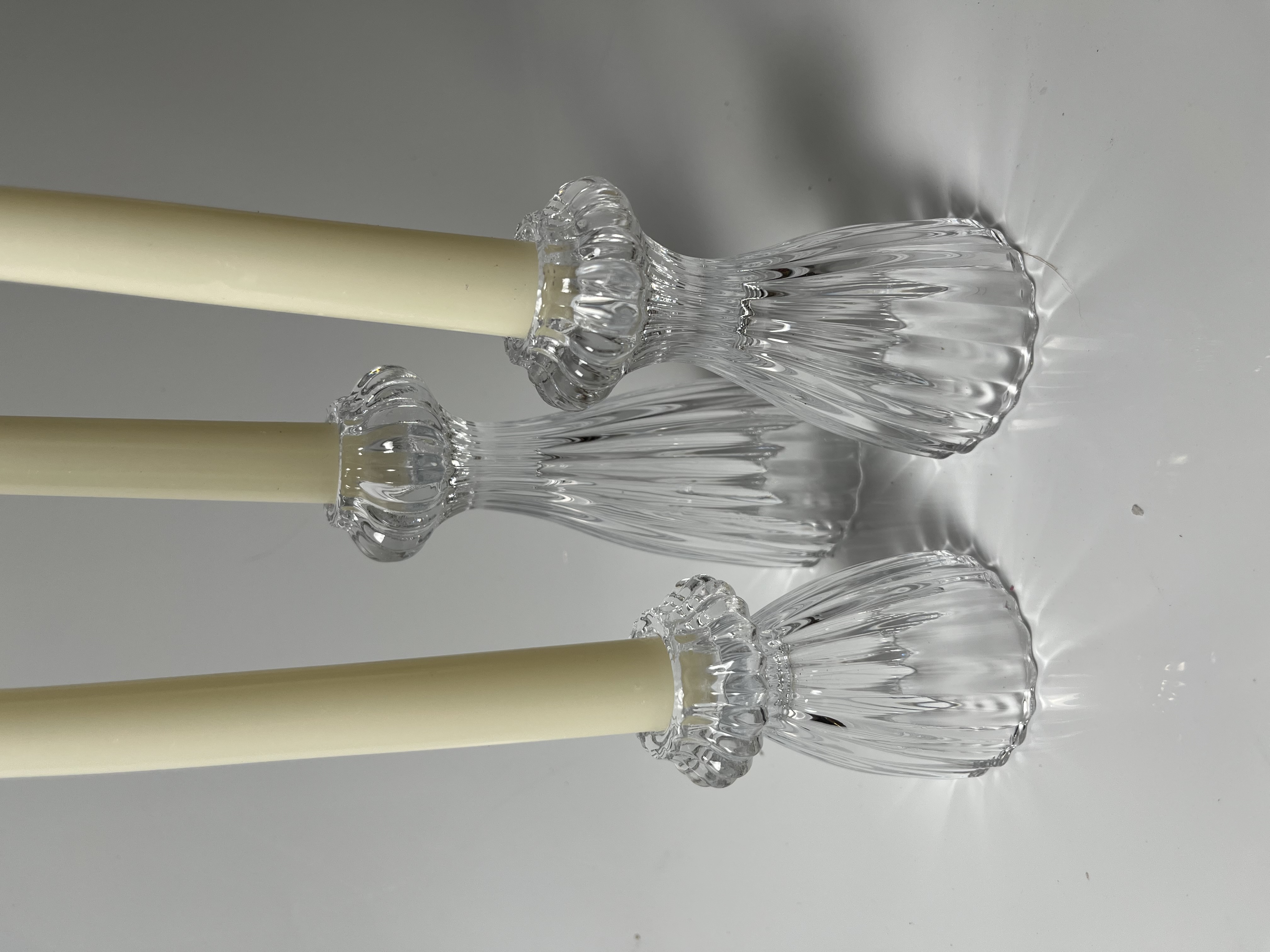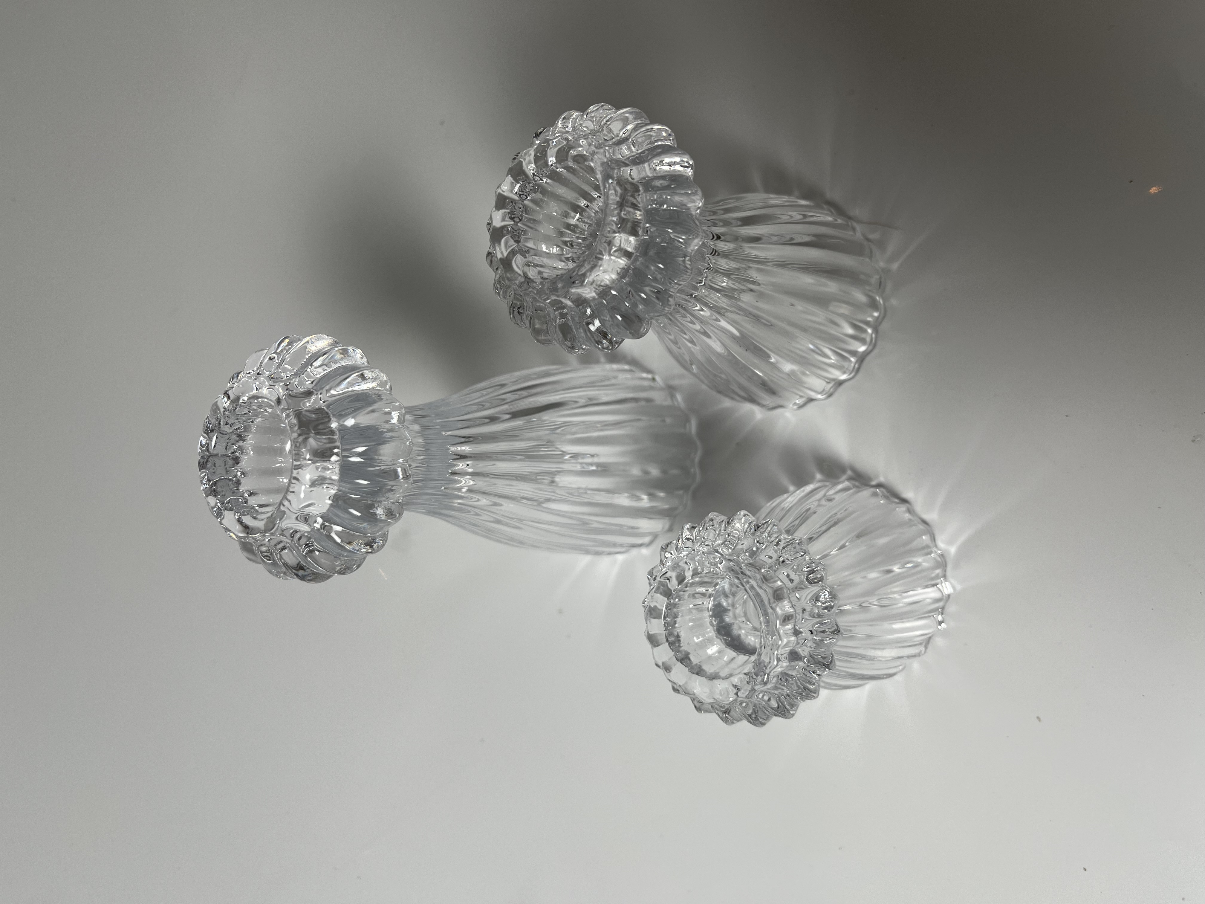 Clear Ribbed Glass Tiered Candle Holders