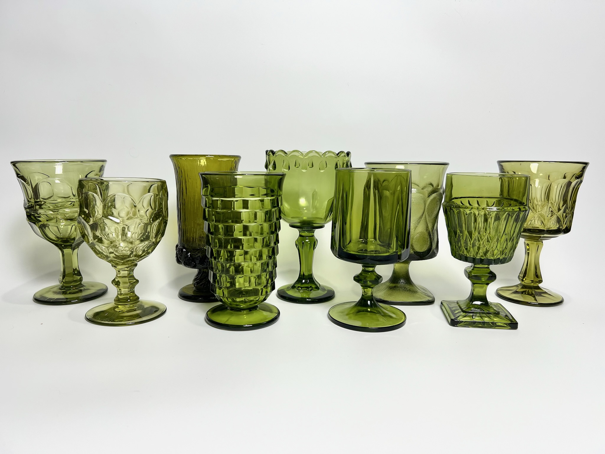 The Green collection includes all the green goblets! All Glassware collections are an assortment of water, iced tea, and wine goblets. They range from 5.5 to 7.5 inches in height and can hold between 8.5 to 13 ounces.