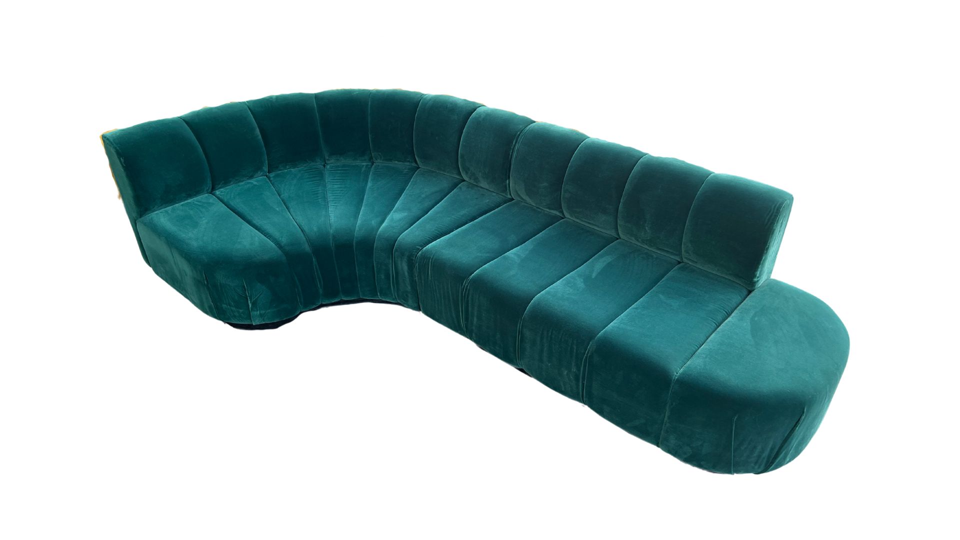 Inventory Gallery Furniture L Shaped Green Search View Wishlist L Shaped Green Price: $250.00 Description: Fun Green Modular Sofa. This is two pieces. Length: 107 inchesWidth: 30 inches Add to Wishlist