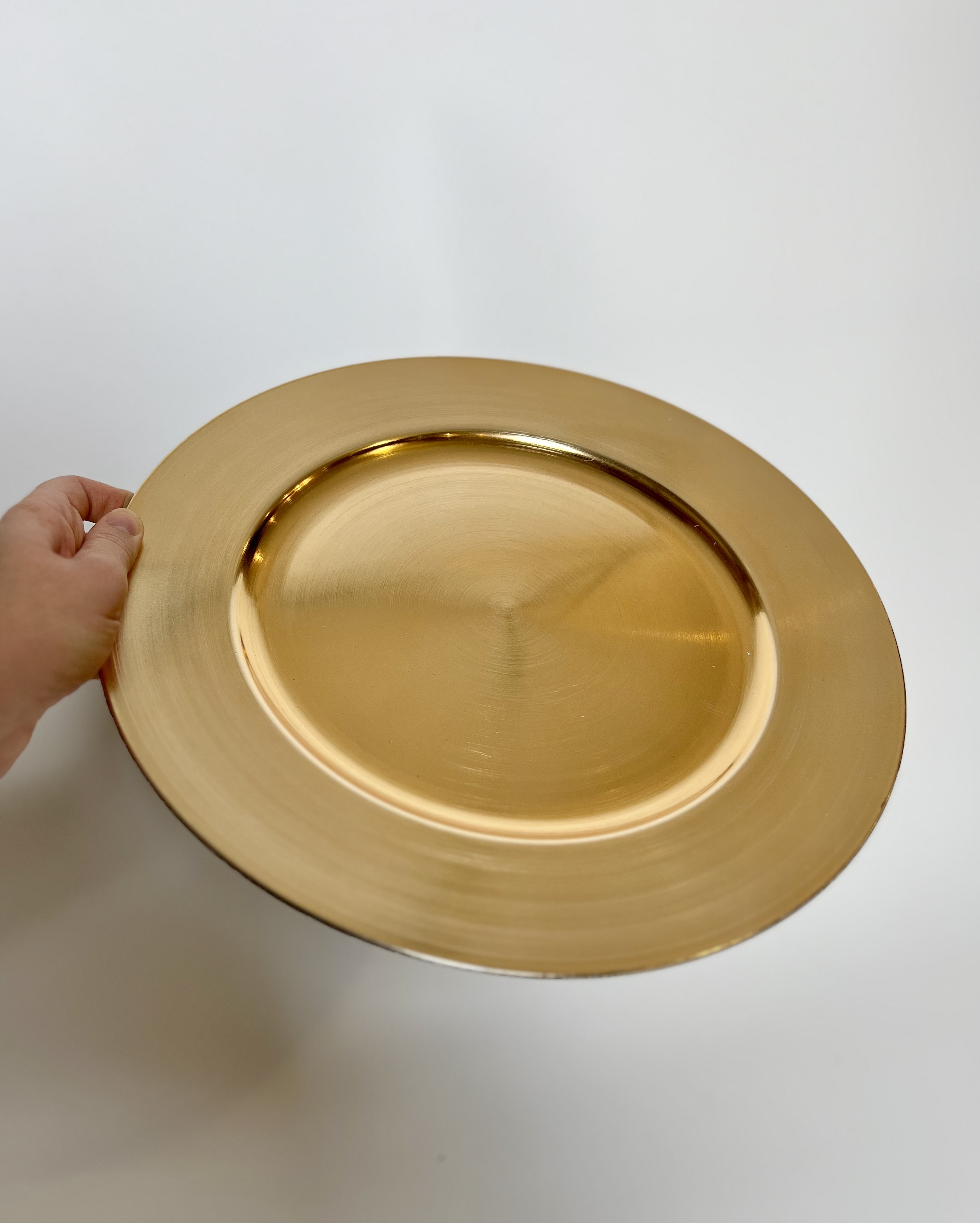 Inventory Gallery Chargers Metallic Gold Chargers Search View Wishlist Metallic Gold Chargers Price: $1.00 Description: Your classic gold metallic charger. About 13" diameter. Tags: charger, gold, gold charger Add to Wishlist