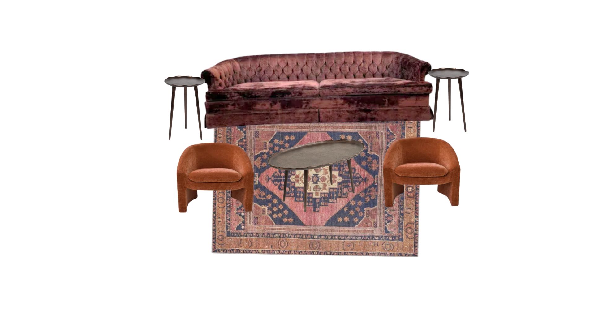 Inventory Gallery Lounges Oh La La Lounge Search View Wishlist Oh La La Lounge Price: $450.00 Description: A great combo of vintage and modern.Includes everything pictured, plus two ottomans and pillows. Add to Wishlist