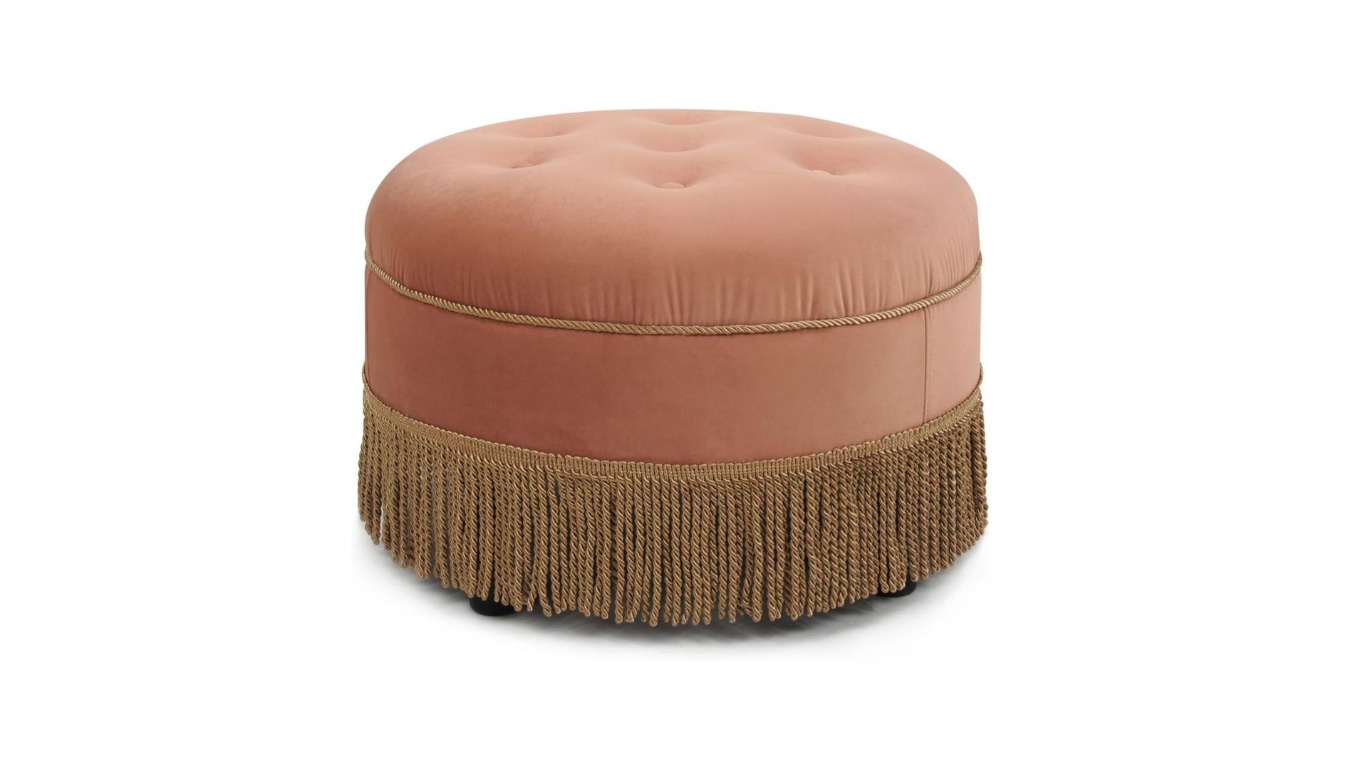 Inventory Gallery Furniture Peach Tufted Ottoman Search View Wishlist Peach Tufted Ottoman Price: $40.00 Description: Peach Velvet Ottoman24"D x 24"W x 16"H Add to Wishlist