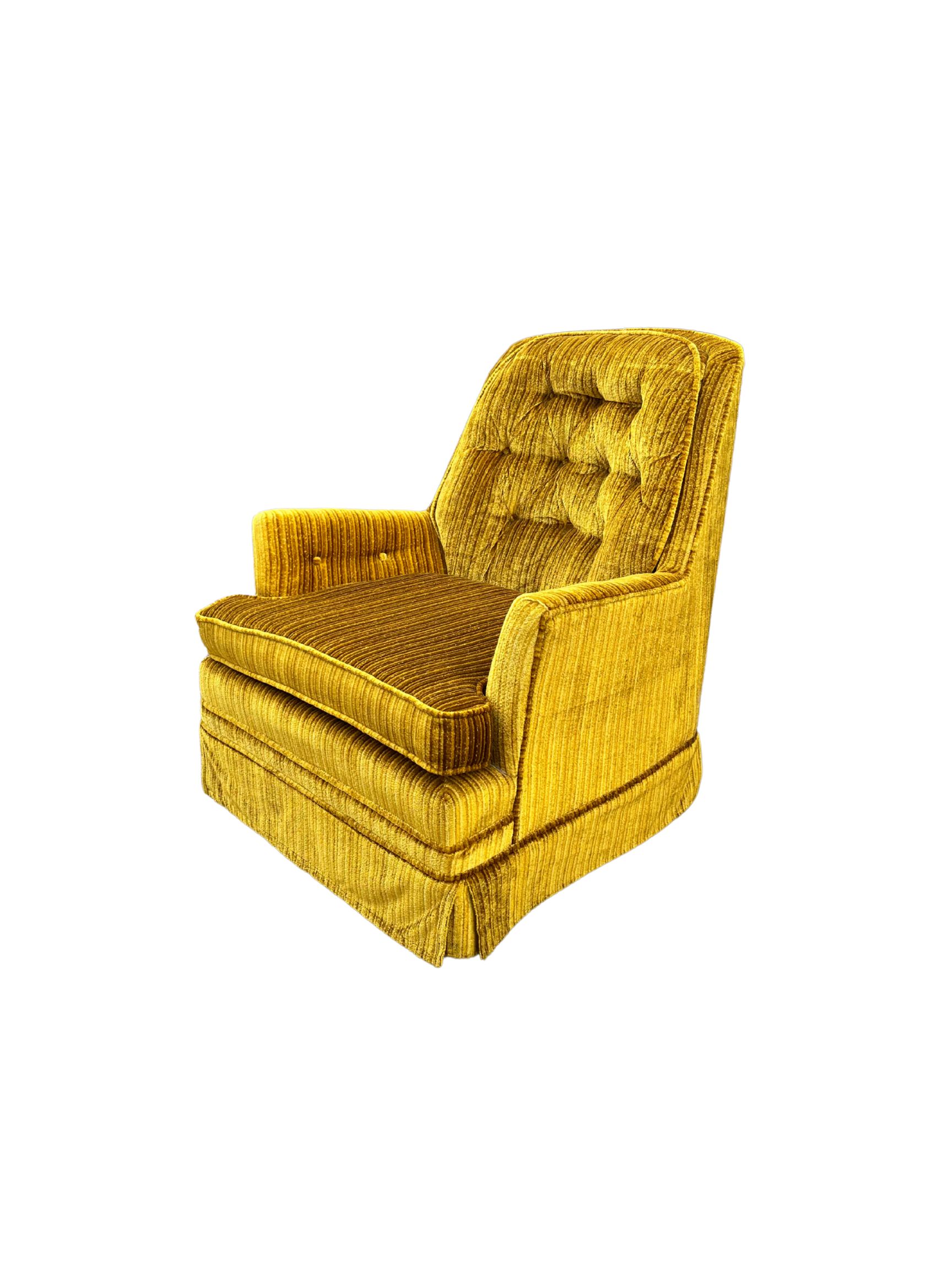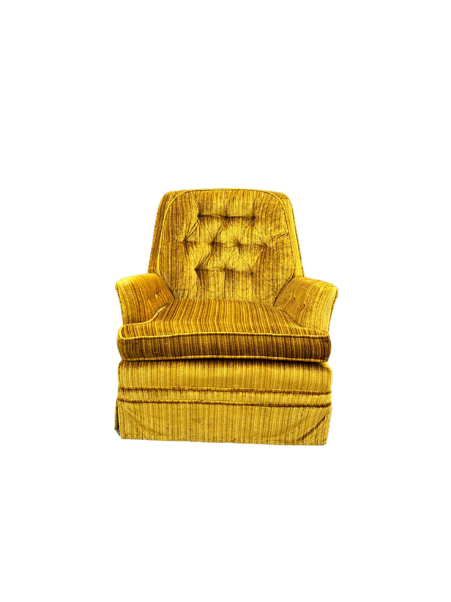 Inventory Gallery Furniture Yellow Striped Velvet Swivel Chair Search View Wishlist Yellow Striped Velvet Swivel Chair Price: $50.00 Description: Ya classic yellow striped vintage yellow swivel chair! 30" W x 30" D x 40" HSeat Height: 15" Tags: chair Add to Wishlist